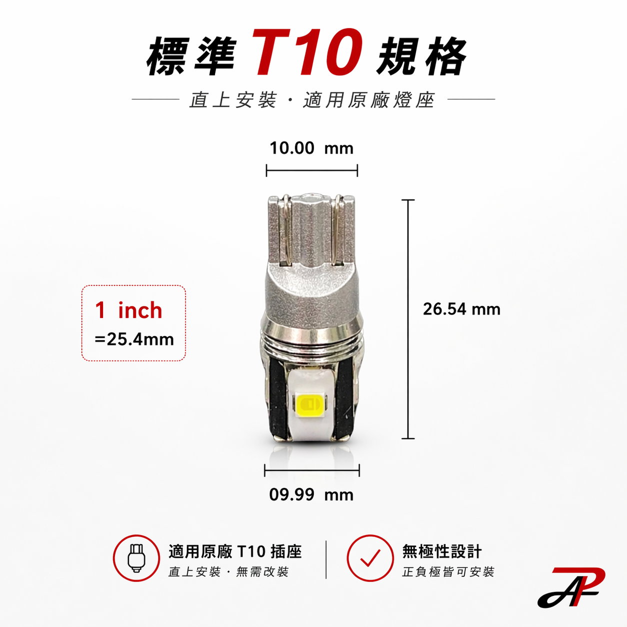 ✔ 標準T10 / W5W 規格:對應原本燈泡規格直接替換