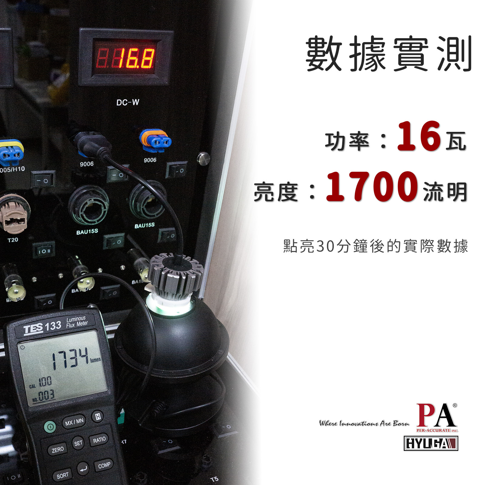 檢測方式:使用【專業LED積分球】測試,並非訪間沒有專業儀器偵測的數據。