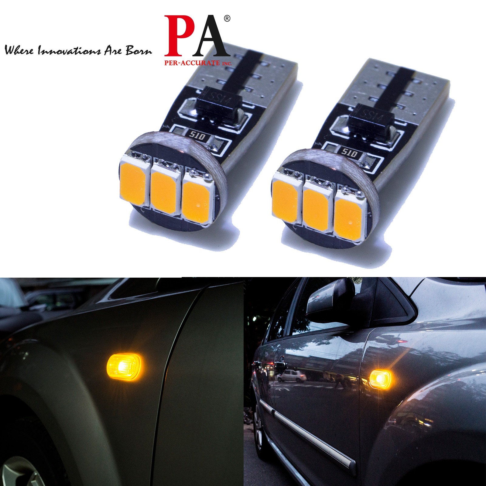 【PA LED】T10 3晶 三星 5630 SMD LED 黃光 橘光 側燈 側方向燈 方向燈 小燈 定位燈